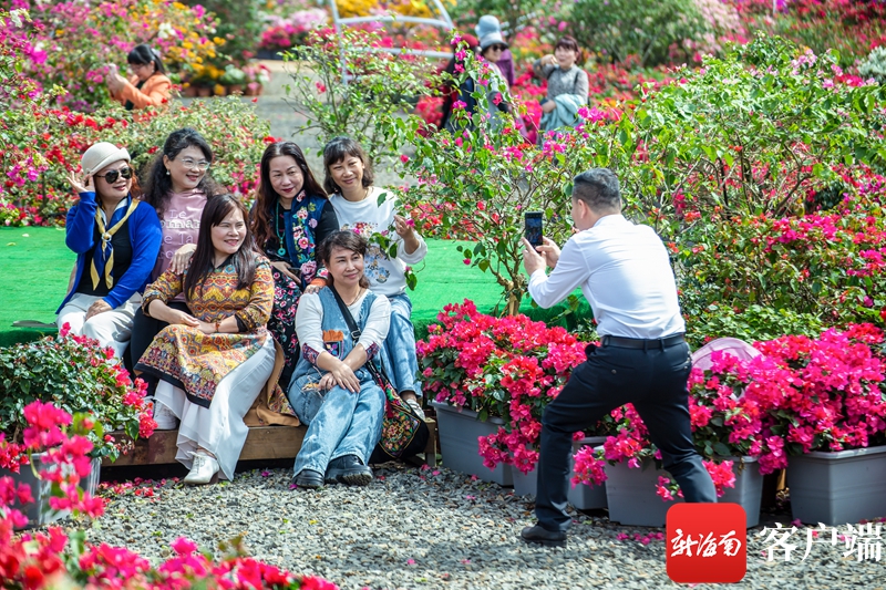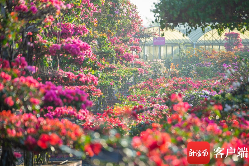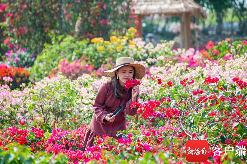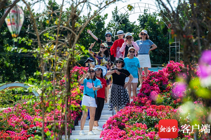看花海、走花道、聞花香、聽花吧、購花物、宿花屋,眼下,海口三角梅共享農莊正在上演一場為期三個月的“花園村莊 幸福生活”花展主題田園風光秀。