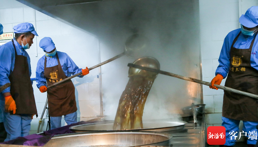 工人在制作土糖。圖片由海南憶家食品有限公司提供