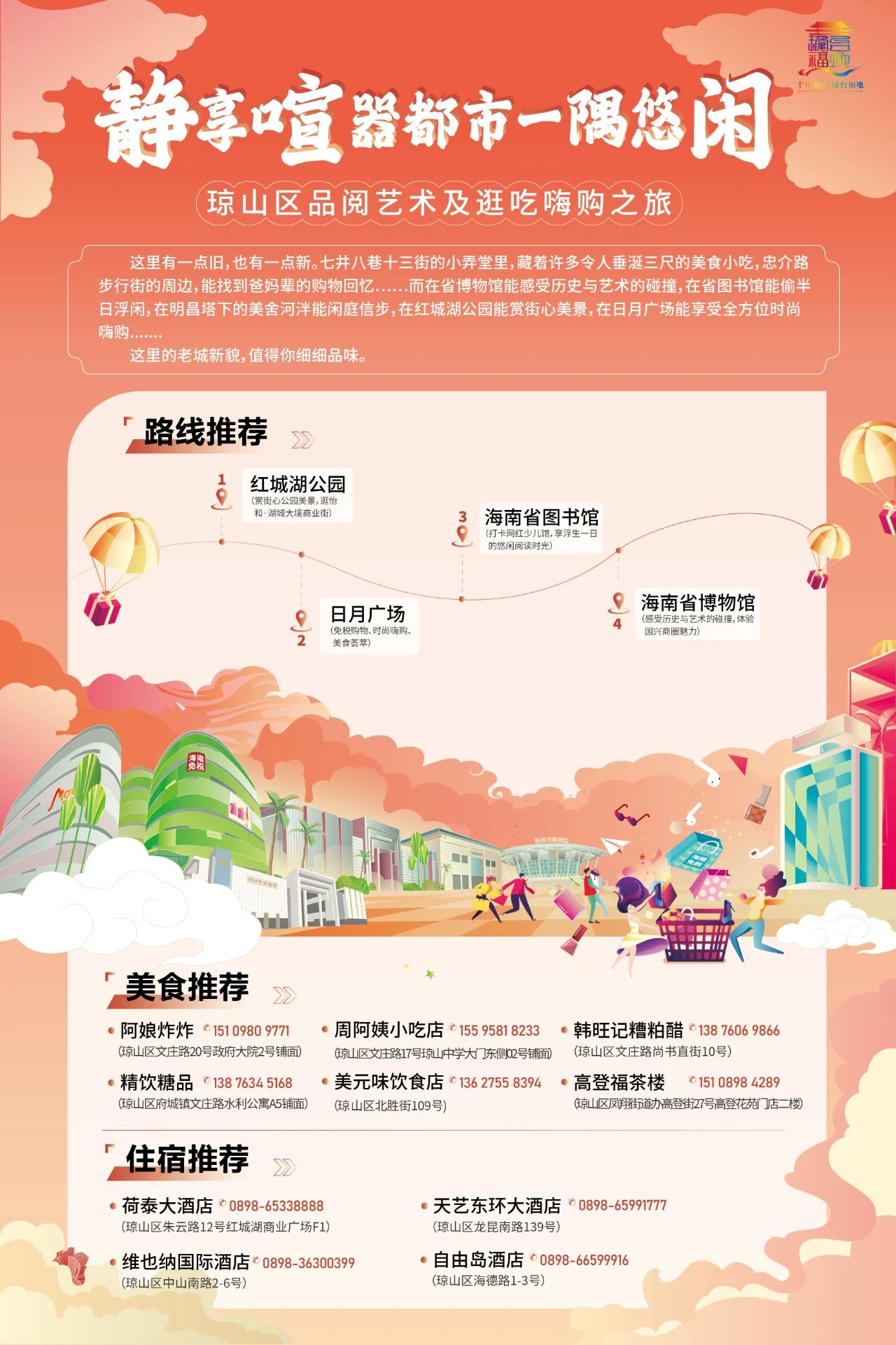 海瑞故居——府城達士巷——忠介路步行街——瓊臺書院——瓊臺福地——五公祠——瓊洲文化風情街