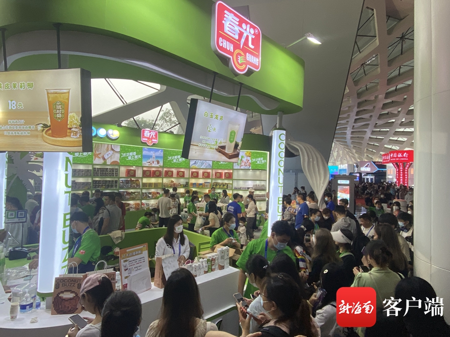 在迎賓大廳內(nèi),春光集團的展位迎來了眾多消費者的光臨,不少島外游客更是對其諸多椰制產(chǎn)品贊不絕口,選擇買上幾袋帶回給家人朋友;在3號館高端食品保健品館內(nèi),該集團還打造了“隨時椰”飲品小站,帶來一款全新的茶飲品類——“椰茶”,如竹蔗椰青水、椰子糖綿云美式、白玉龍井多款原創(chuàng)產(chǎn)品,吸引了眾多茶飲愛好者的打卡拍照,現(xiàn)場銷售十分火爆。