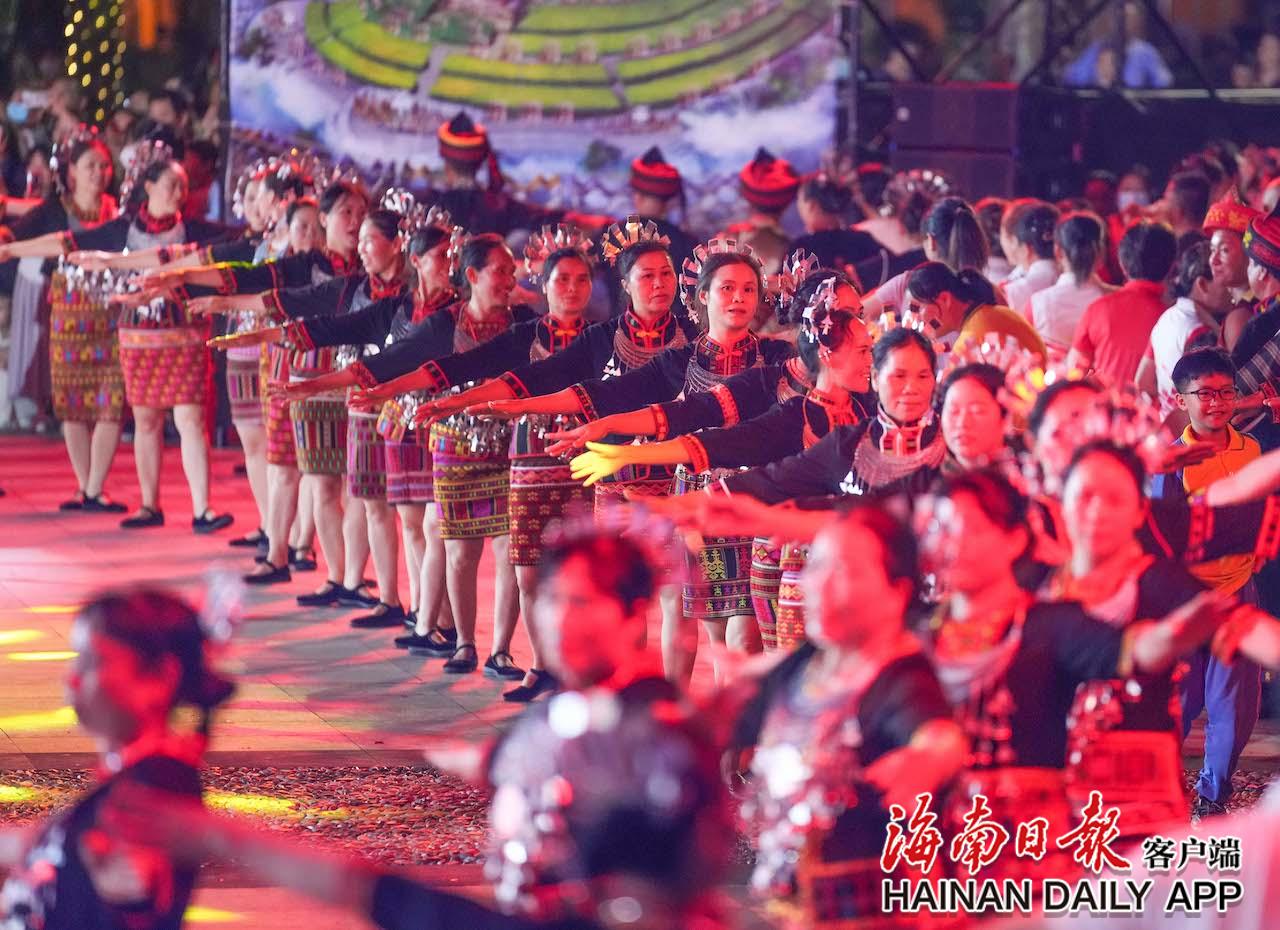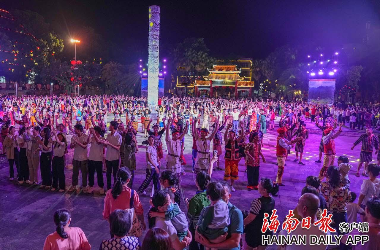 4月17日,五指山市通什鎮三月三廣場的千人共同舞現場熱鬧非凡。海南日報記者 李天平 攝