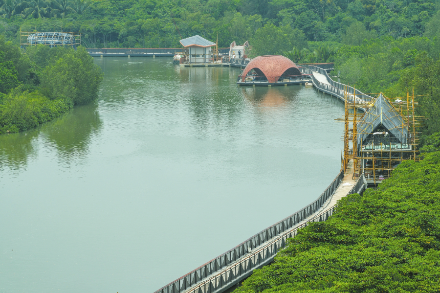 海上棧道剩百米欄桿未安裝,科研觀測(cè)塔內(nèi)部裝修即將結(jié)束,沿途的服務(wù)驛站正在加快建設(shè)……連日來,海口東寨港紅樹林旅游區(qū)一期項(xiàng)目建設(shè)不斷提速。記者4月20日從項(xiàng)目建設(shè)方獲悉,項(xiàng)目目前已進(jìn)入收尾階段,預(yù)計(jì)今年“五一”期間可對(duì)外開放,屆時(shí)將成為海口科普研學(xué)旅游的新晉打卡地。