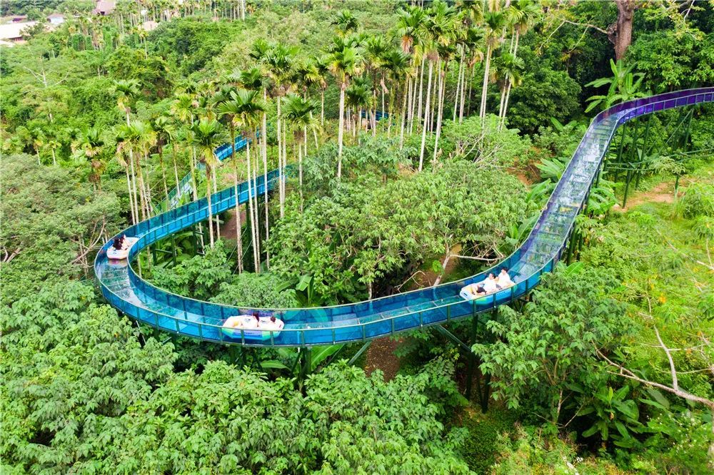 此外,景區(qū)內(nèi)不僅建有空中小火車、水陸越野車、山地滑車等游玩項(xiàng)目。還有雨林水漂體驗(yàn)項(xiàng)目,全長(zhǎng)800米的七彩玻璃水槽,雙人座氣墊船提供完美體驗(yàn)。