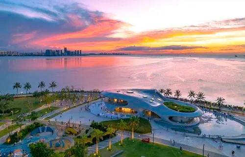 特別推薦的是——網紅新景點海口灣。在這里,大海、公園、街區、大橋、燈光秀等城市景觀融為一體,成為從各個角度都可以霸屏游客手機的高顏值的灣區。