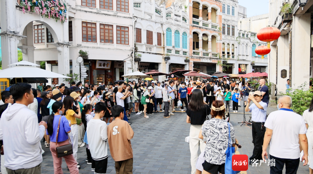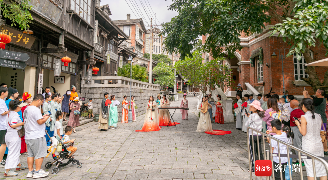 市民游客在??隍T樓老街看演出。海口市旅文局供圖