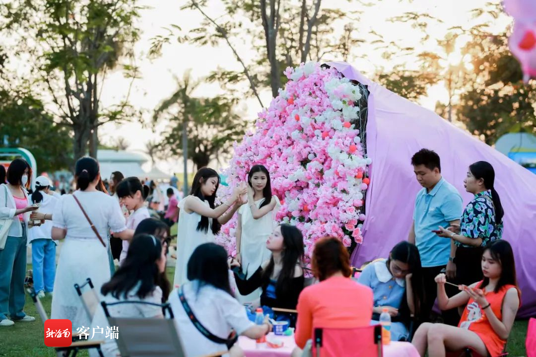 當粉色遇上城市海岸派對,粉色的市集攤位、粉色的露營帳篷、粉色的巨型花束,不期而遇的浪漫都在“五一”被點亮。4月30日晚,“向海而歌·??趯櫡奂尽?023年城市海岸派對在??谑兰o公園北側草坪開市,吸引眾多市民游客前來“趕集”。