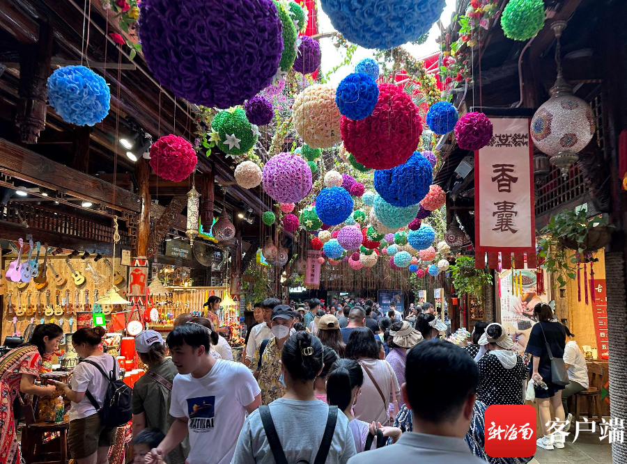 5月1日,游客在三亞千古情景區(qū)游玩。記者沙曉峰攝