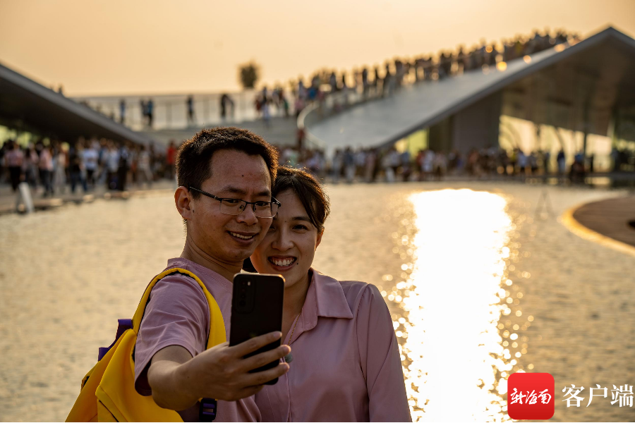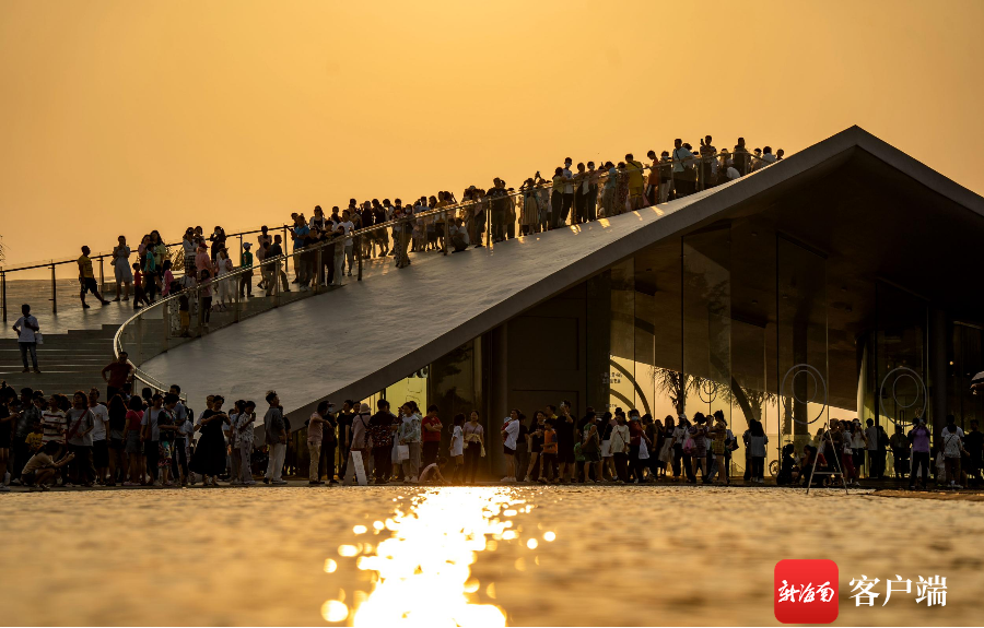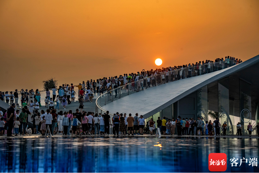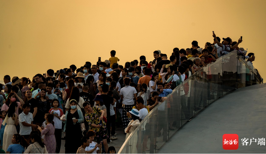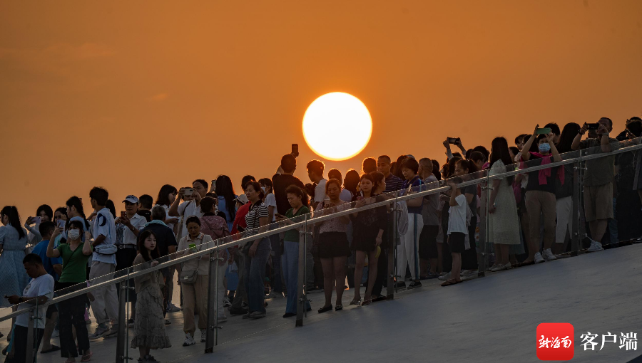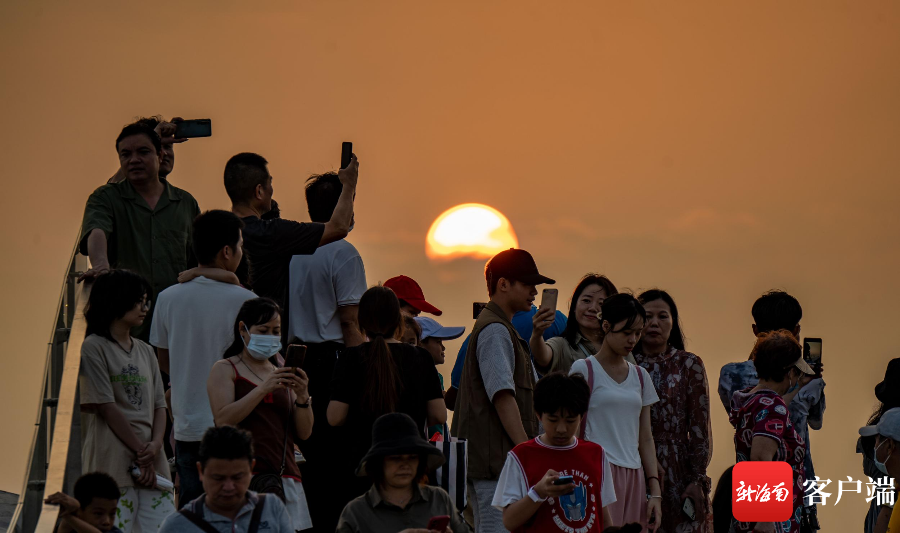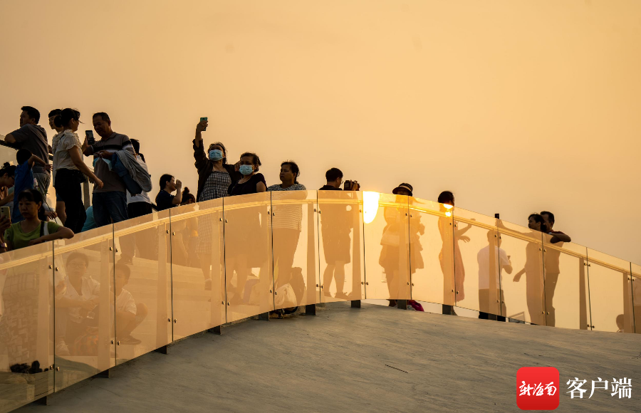 新海南客戶端、南海網、南國都市報5月2日消息(記者 劉孫謀)5月1日下午6點左右,許多市民游客趕往海口海甸島美麗沙海岸西北處的海口灣6號驛站——“天空之山”,在此等待落日,遠望過去人山人海,市民拿著手機在等待夕陽西下。