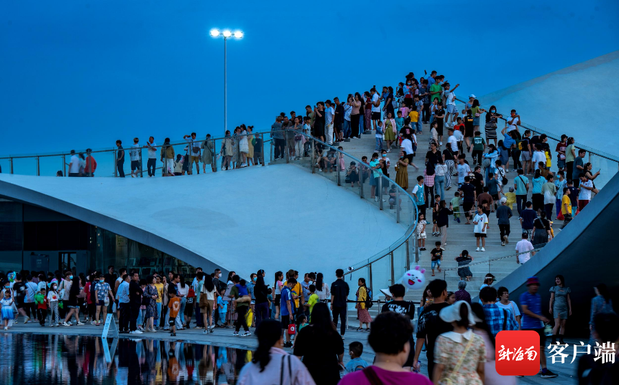 市民游客可在“天空之山”中間位置排隊等待,登上高點處拍攝夕陽。也可以漫步在海邊,感受徐徐海風。