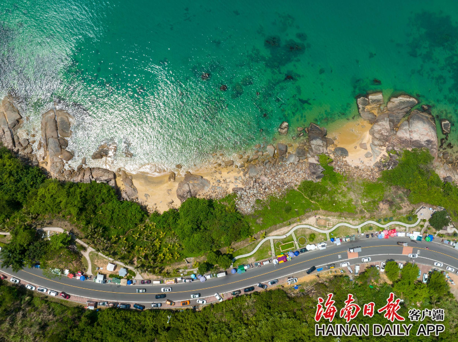 4月30日,不少游客趁著“五一”假期自駕來到萬寧石梅灣旅游公路,感受濱海旅游公路的魅力。萬里晴空下,石梅灣的海水清澈見底。抬眼望去,海水藍出層次感,讓游客賞心悅目。據悉,萬寧石梅灣至大花角最美旅游公路全長35.24公里,全線串聯了石梅灣、南燕灣、神州半島等多個美麗海灣。