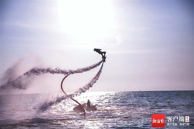 在東方市魚鱗洲風景區(qū),游客體驗水上項目。趙茜 攝