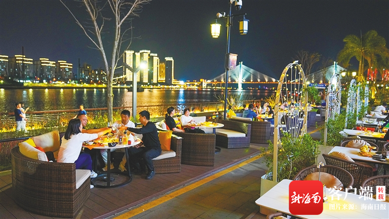 當(dāng)夜幕緩緩落下,海口灣兩岸的燈光漸次亮了起來。灣畔的主題餐廳、酒吧、夜市開始忙碌起來。迎著海風(fēng)喝一杯咖啡,約三五好友聚餐敘舊,在煙霧升騰的攤位前吃幾串燒烤、喝一杯甘蔗汁,不管你來自何方,此時此刻都可以做一回舌尖上的??谌?。