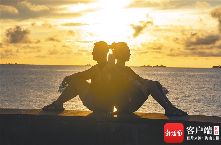 一對情侶在??跒骋粠Ш嫌?。海南日報記者 李天平 攝