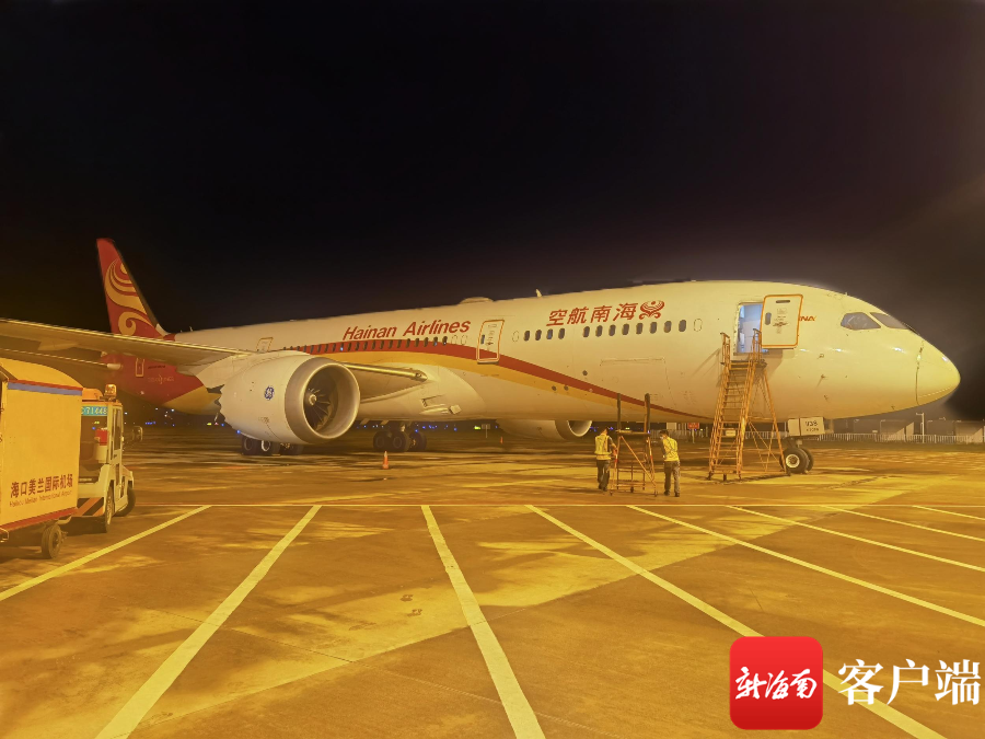 ?海口往返巴黎出港航班保障現(xiàn)場。海口美蘭國際機(jī)場供圖