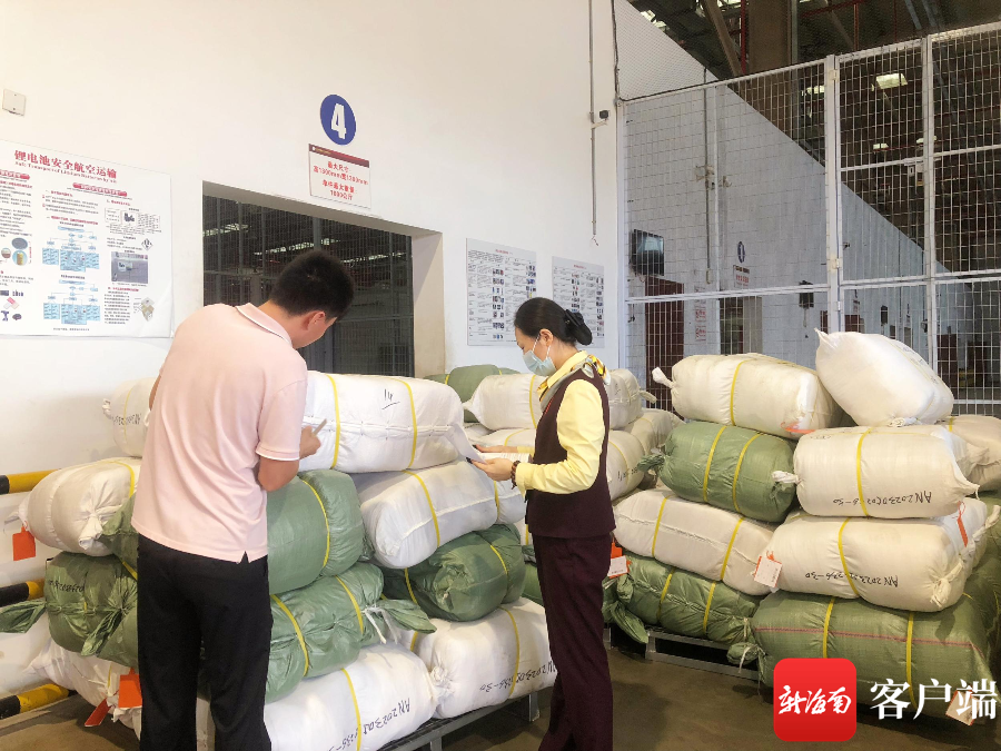 美蘭機(jī)場國際貨運(yùn)站收運(yùn)貨物。海口美蘭國際機(jī)場供圖