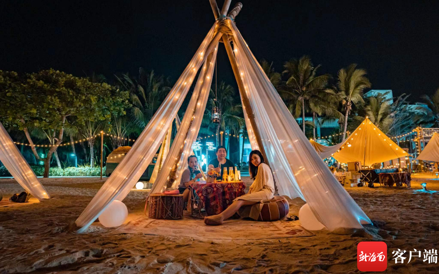 游客在蜈支洲島露營。蜈支洲島旅游區供圖