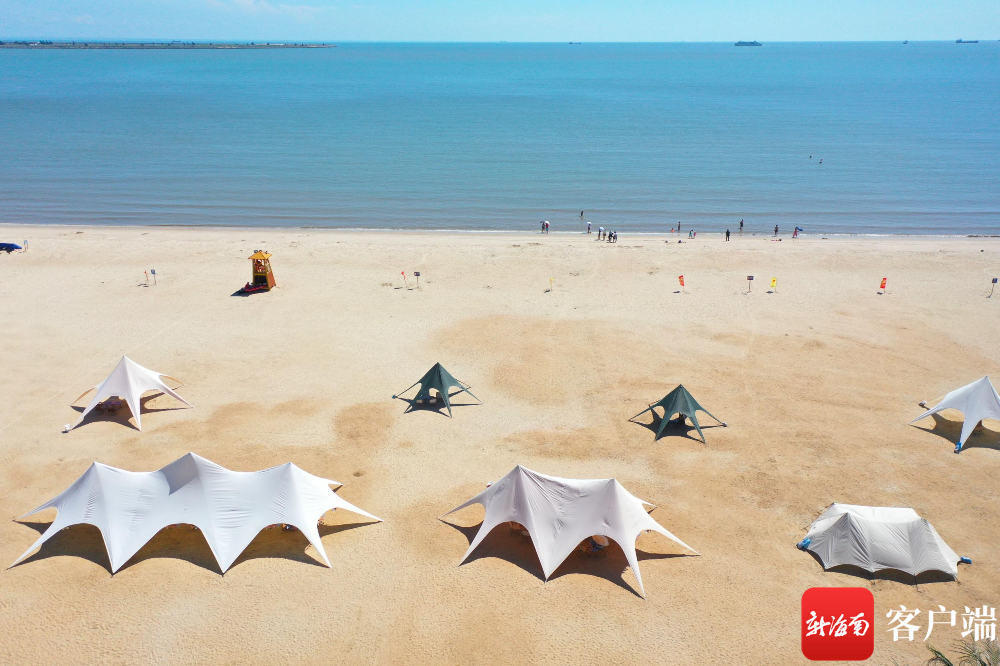假日海灘為洗龍水的市民準(zhǔn)備的帳篷。記者 汪承賢 攝