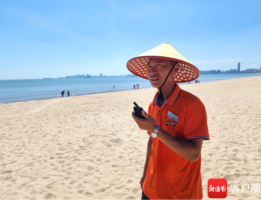 假日海灘工作人員拿著對(duì)講機(jī)開(kāi)始安全巡邏。記者 汪承賢 攝