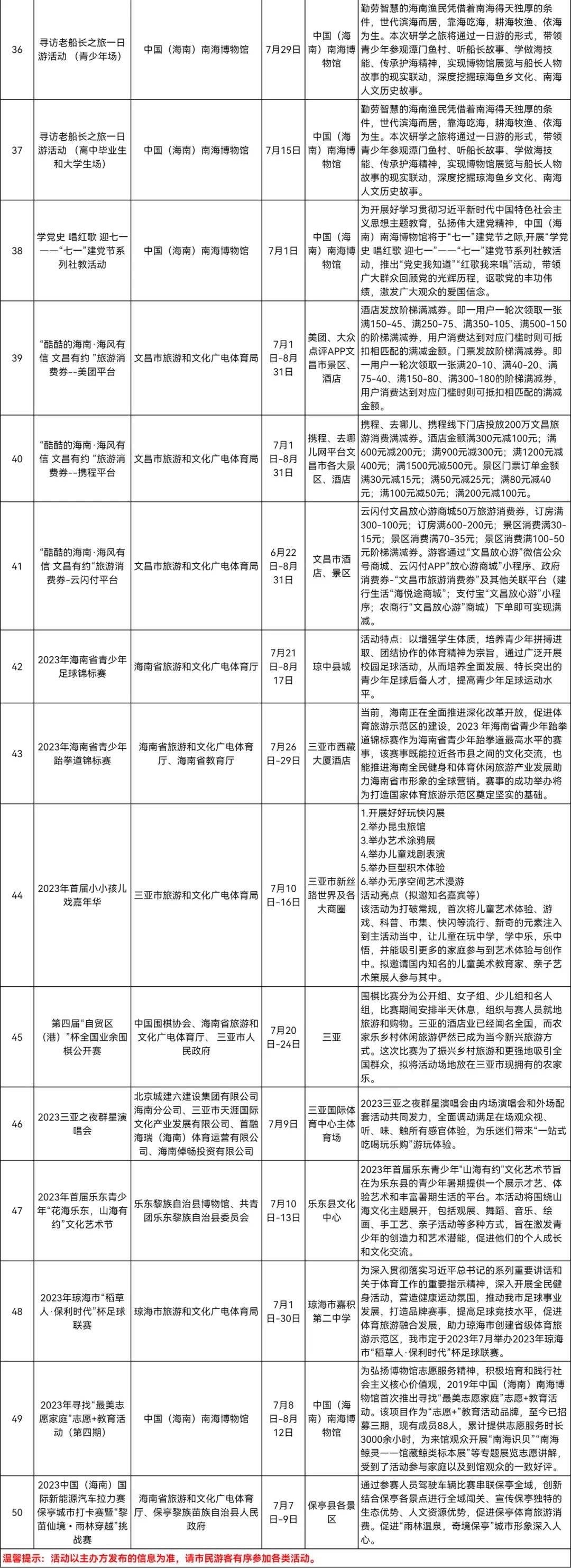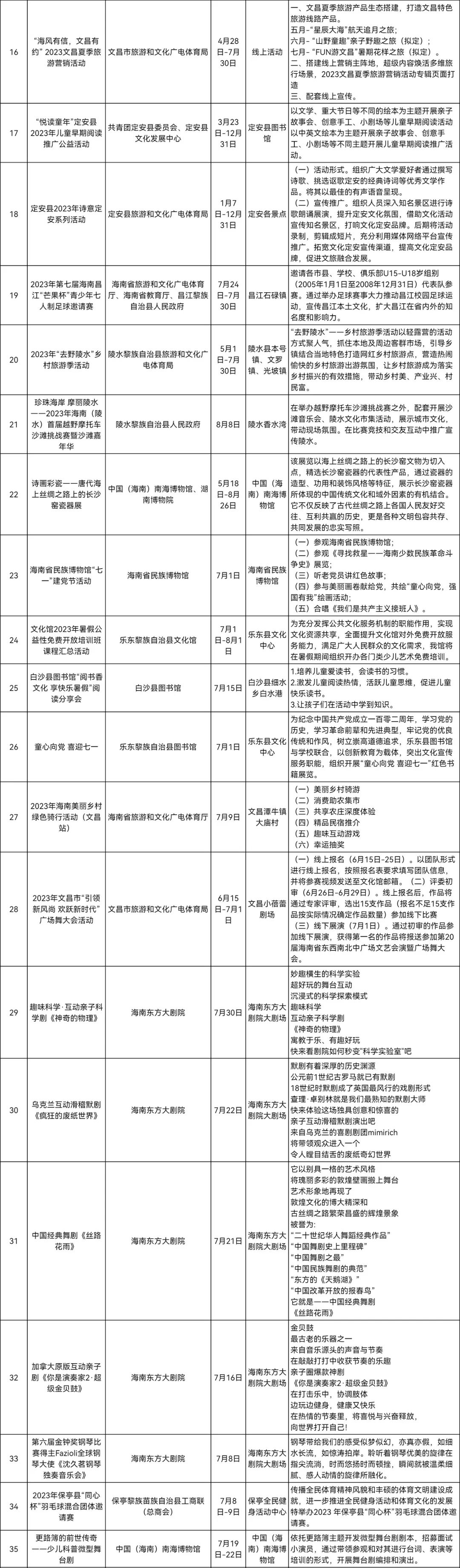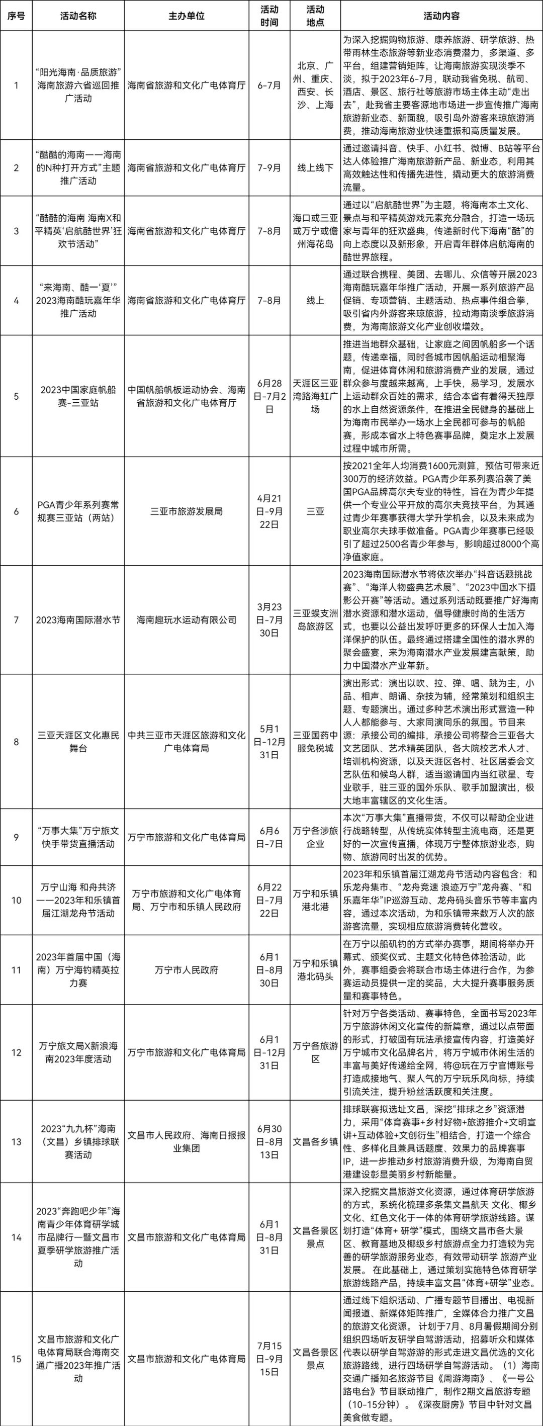 2023年7月全省旅文體計劃舉辦活動匯總表
